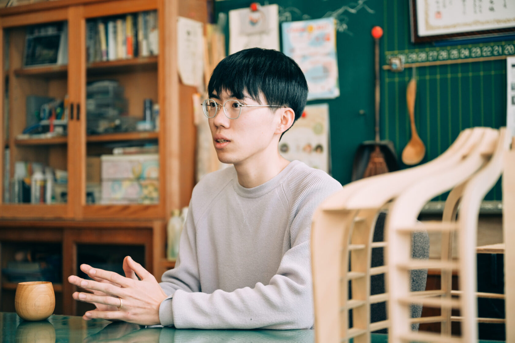 - はい。そこから松川町に数週間滞在し、山が身近にある暮らしや、大木が目の前で伐採されて製材されていくダイナミックなプロセスを体験するうちに、「ここでものづくりをしたい!」と強く感じて。大学卒業間近だったこともあり、そのままの勢いで協力隊に応募しました。
